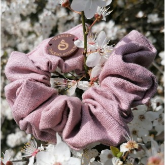 Są szyte ręcznie z rzadko spotykanego materiału z rodziny pokrzywowatych. Gumki do włosów z naturalnej 100% Ramii  ozdobione są drewnianym guzikiem z logo Shaushka.