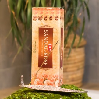 Kadzidełka SANDAL-ROSE to połączenie drzewnego, balsamiczno-anyżowego drzewa sandałowego z ciepłym, słodkim różanym zapachem. Mieszanka aromatów sandał i róża sprzyja odprężeniu, wzmacnia praktyki duchowe, rozjaśnia myśli, pomaga zregenerować uszkodzoną aurę. Drzewo sandałowe odpowiada za duchowe doznania, łączy ze światem eterycznym. Róża odpowiada za magię miłości, daje nadzieję na nowe przeżycia. Połączenie tych zapachów transformuje bezproduktywny gniew, frustrację i smutek w energię kreatywności i samodoskonalenia.