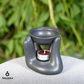 Ceramiczny kominek zapachowy w kształcie Otwartej Dłoni z misą na olejek, kolor czarny.